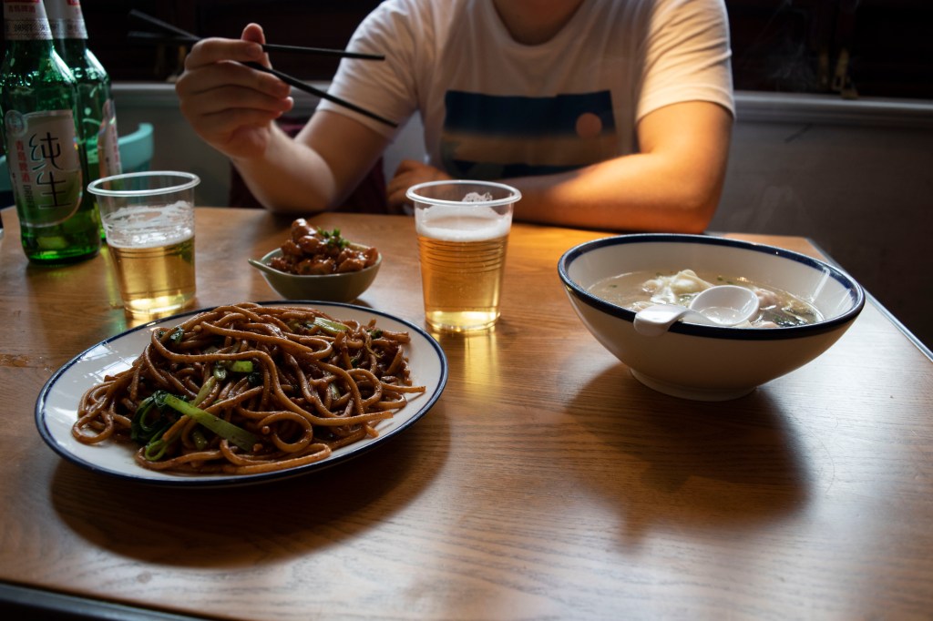 Noddles, Sopa Wonton y cerveza Pearlriver.