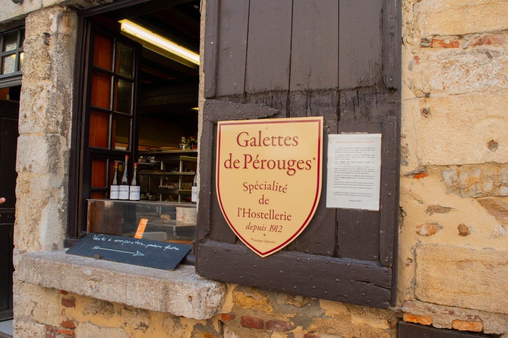 Del lado gastronómico descubrimos que en Pérouges hay un postre tradicional desde 1912: la Galette de Pérouges, una tarta muy fina con azúcar, cosida en antiguos hornos. Tan deliciosa que ni me dió tiempo de tomarle foto.