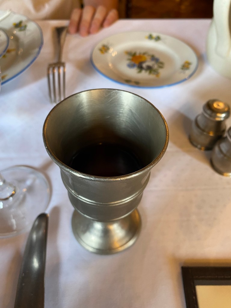 Comimos bastante bien y el servicio fue excelente. Aprovechamos para degustar un aperitivo medieval que me gustó mucho: el Hypocras. Entre su sabor me pareció muy similar al vino caliente que se sirve en invierno, obviamente el hypocras se sirve frío.
